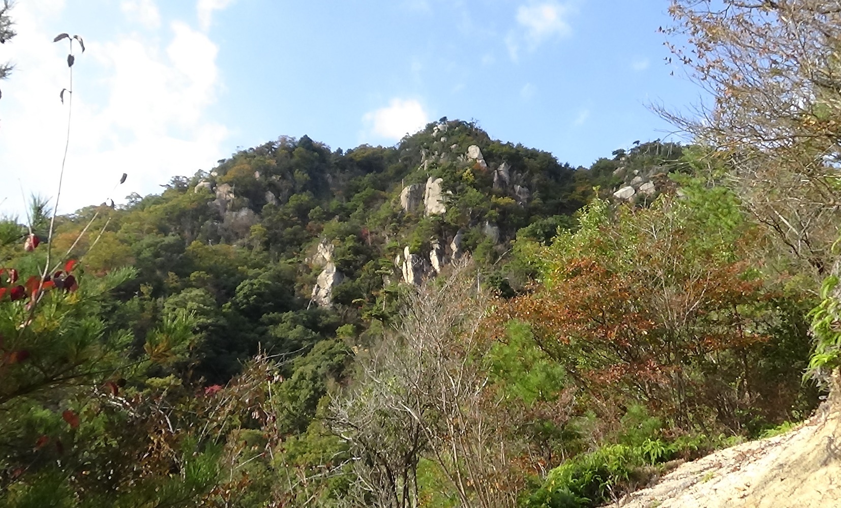 はちょっと歩きにくいスニーカ。標高を上げて経小屋山が見える