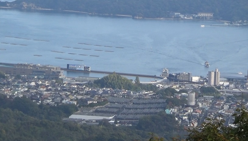 ここは大野瀬戸がよく見えます。宮島も全体が見えます。町に