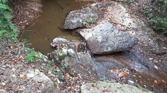 鞍部に水が流れています。