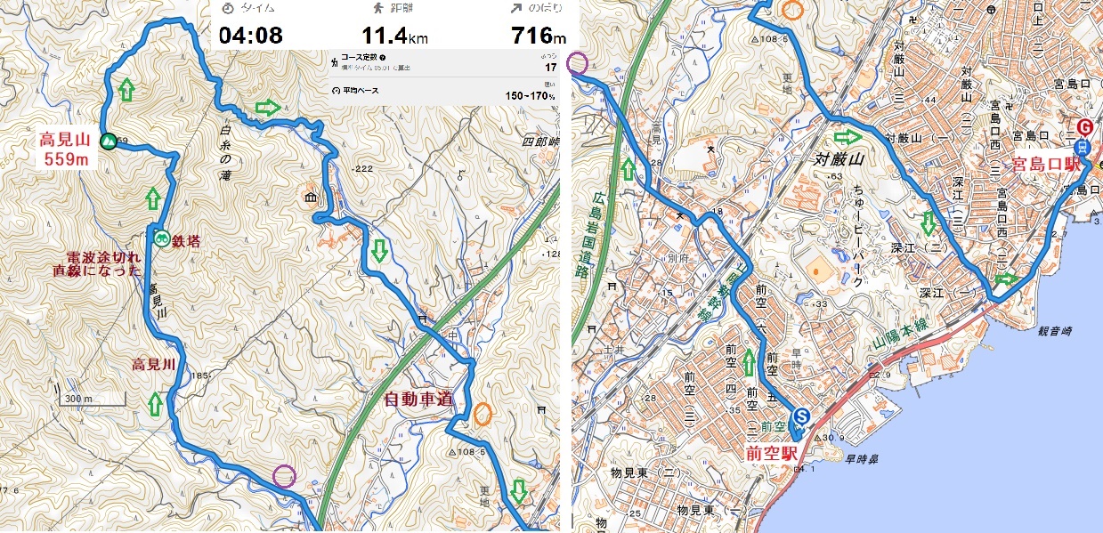 見えます。広島市の三角州もよく見えます。15時半前に案内を