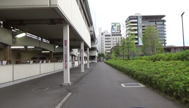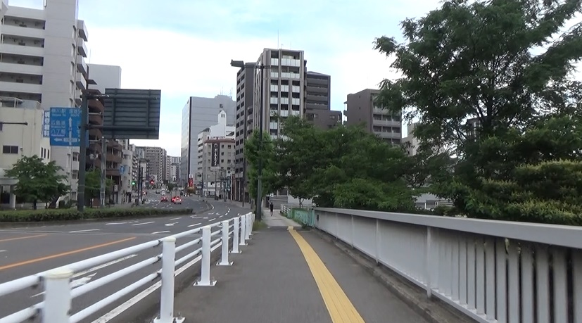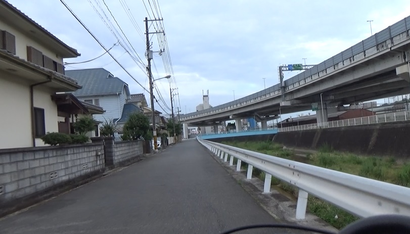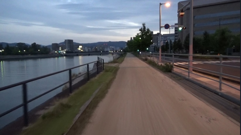 ます。府中の町を移動。広島高速2号が見える府中大川の土手を