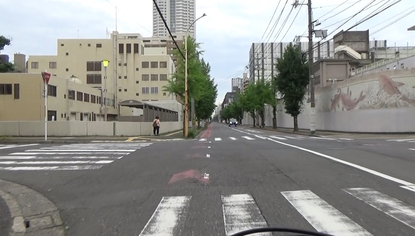 拘置所の前の道は自転車道が描いてありました。進路を変えて西