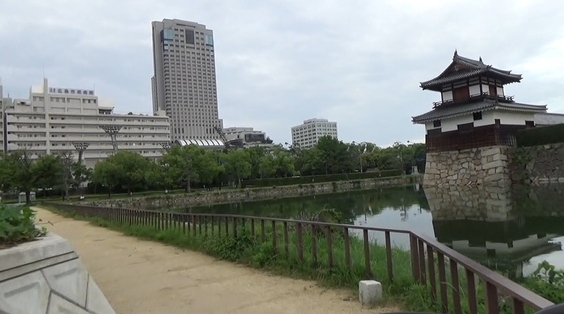 へ。広島城の堀に近づきました。天守閣を見るか迷ったけど曇っ
