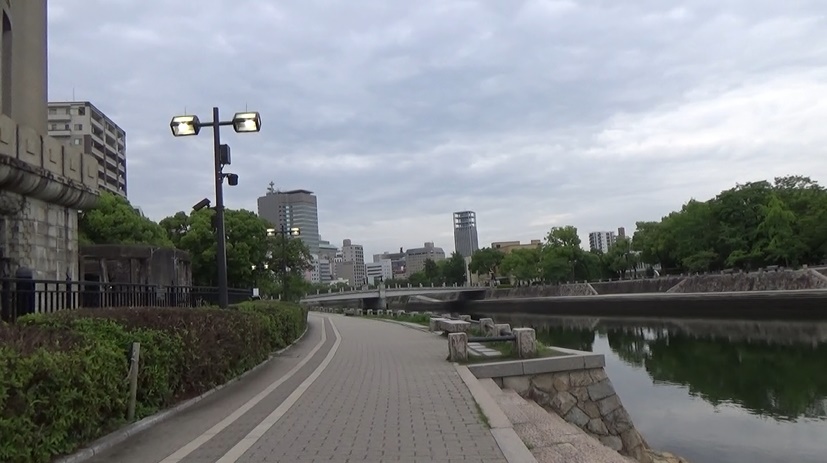 朝の原爆ドーム周辺。まだ人が少ないけど数人おられるからゆ