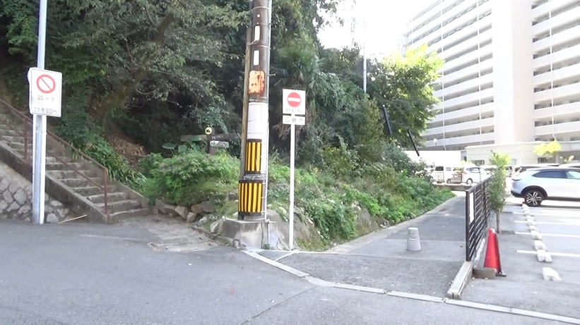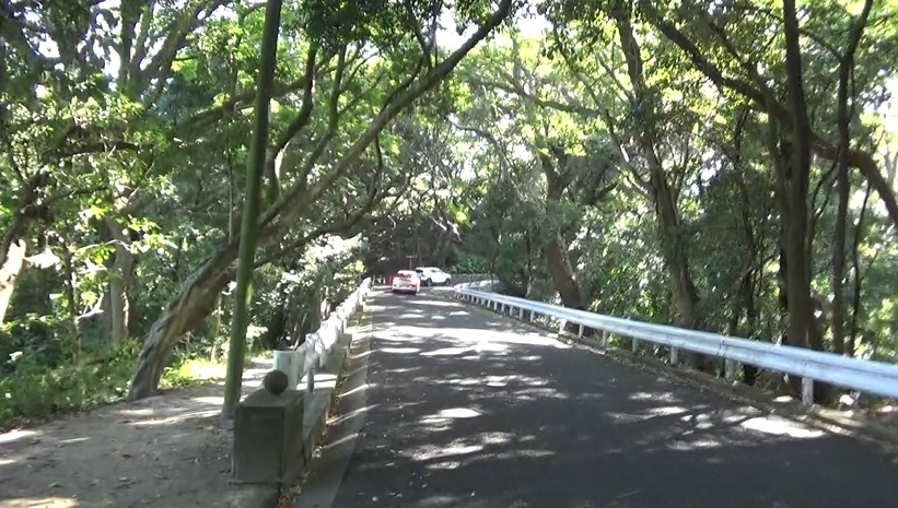 展望がないまま歩きます。砲台跡の近く。たまに車が通ります