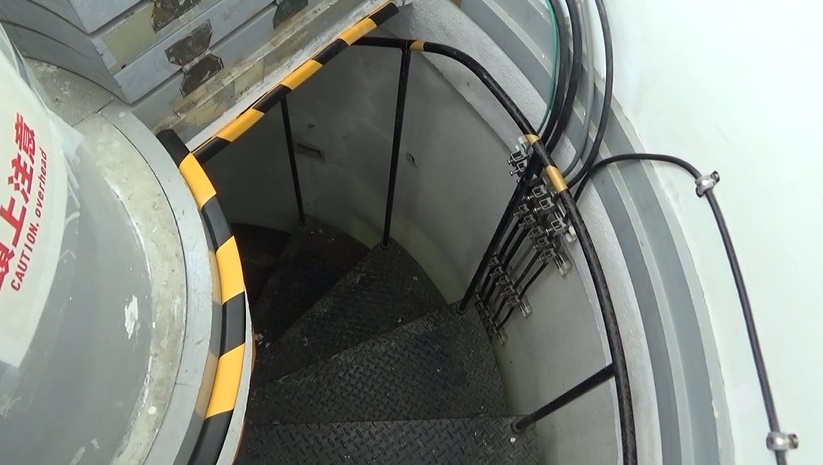 階段をくるくる回ります。狭い。たまに明かり窓があります。