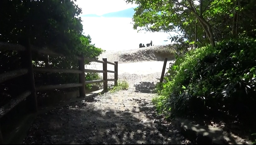 みました。そして遊歩道を下ります。人の声が響いてます。海岸