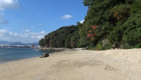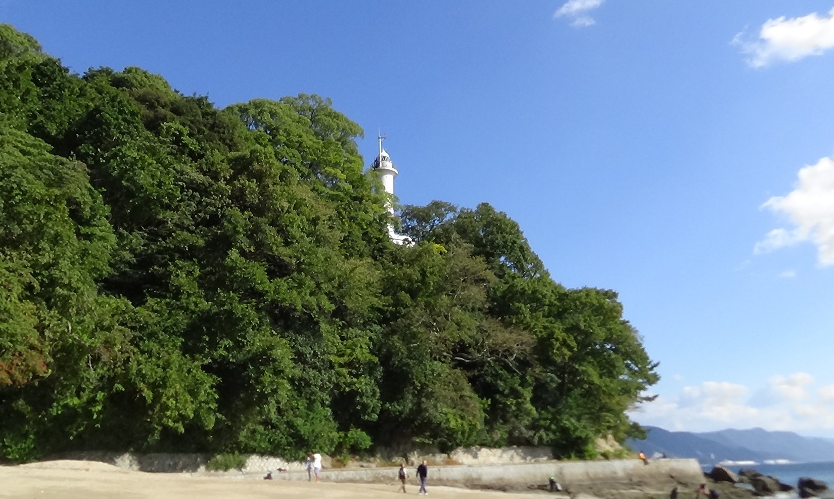 波音が聞こえます。砂浜の奥へ。宇品灯台が見えました。今日