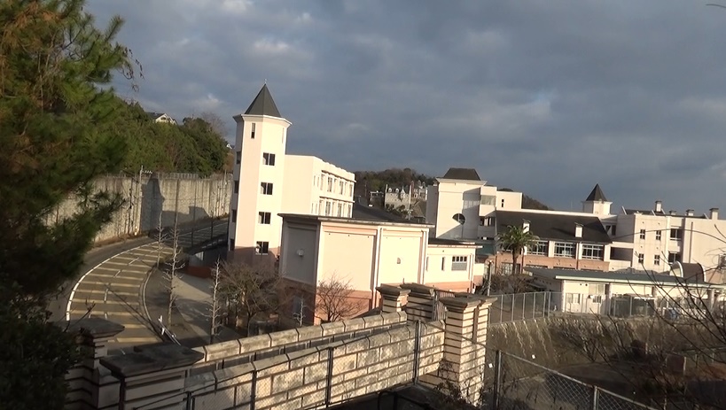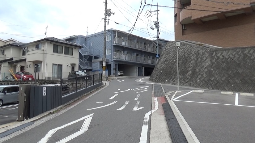 迷路のような団地、どこを通ろうかな? とにかく下ります。