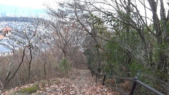 きました。そして予定通り広い階段の道。15時半、住宅地に下