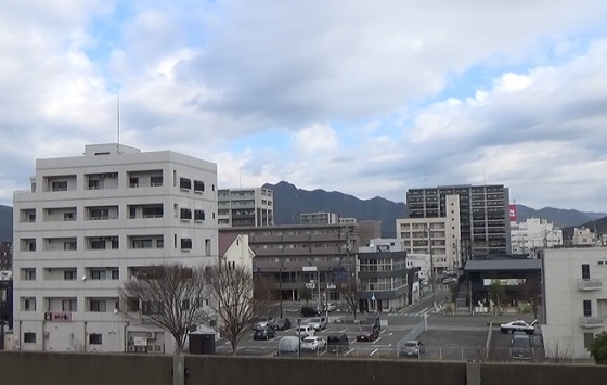 からふもとの景色が見えました。まだ標高が低いけど防府の街が