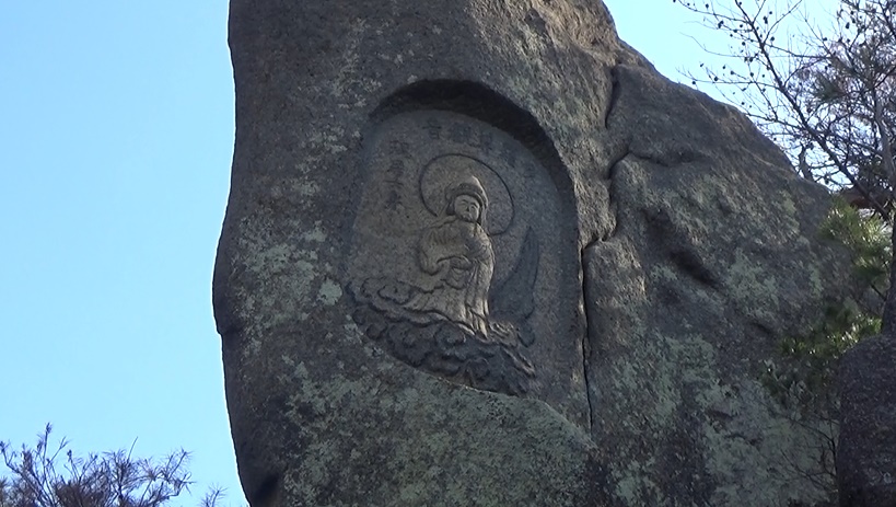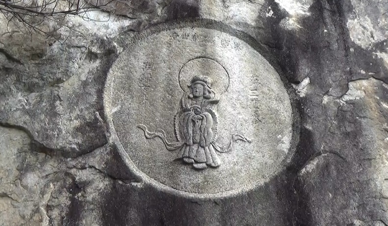 14年前に登った時に感動した摩崖仏。丸い枠の中に刻まれて