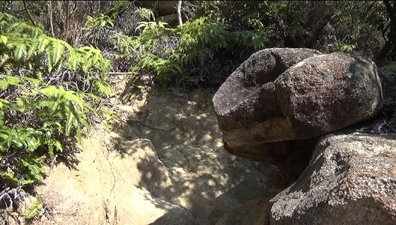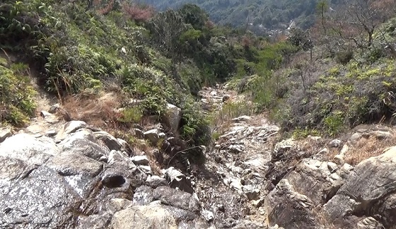 下を見ると岩場の道。とにかく全身を使って慎重に。お尻もつ