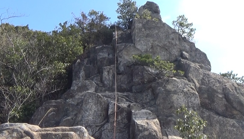 そこには高い岩にロープがかけてありました。下るの厳しそう。