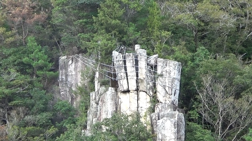 二井寺山の方を見ると大きなひび割れたような岩。なんかハムみ