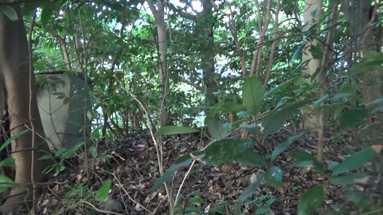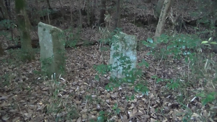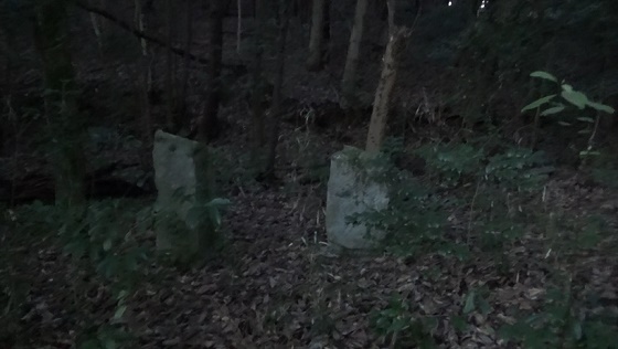 石碑みたいなのが2つ。山陰でうす暗い。展望が得られないル