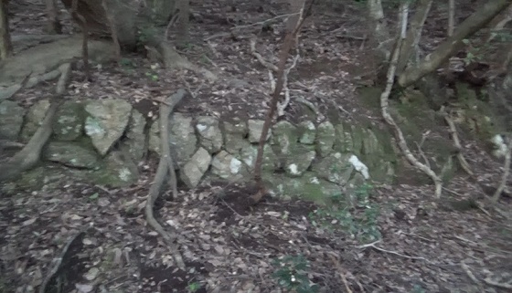 石積を見ながら下ります。棒を回して登ったから、下りでは蜘