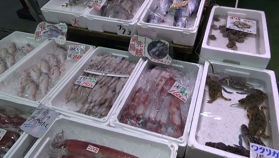 のせいか魚が少ないみたい。イカとウナギとアジなどの開きを買