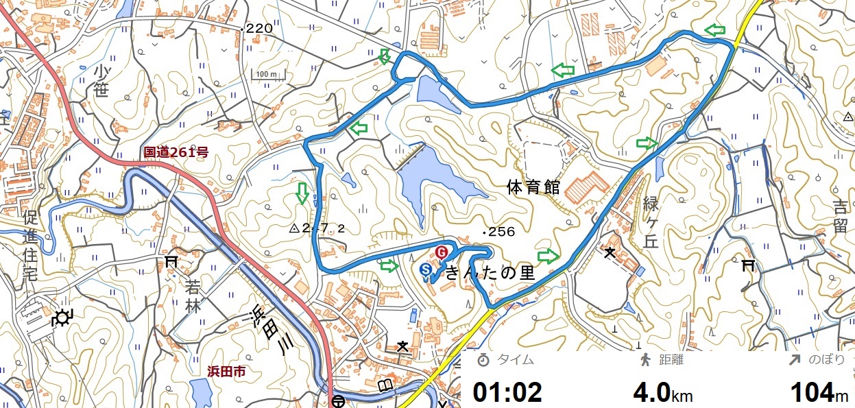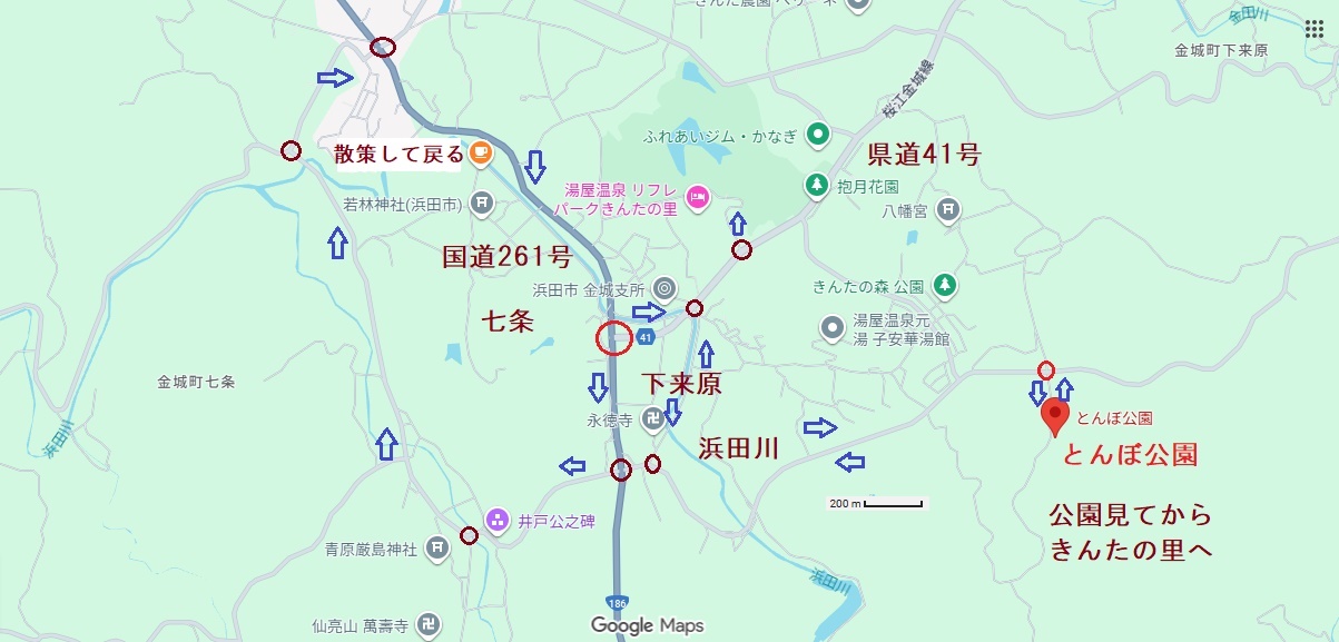 行って帰るつもり。金城町をめざしますが、同じ道だと変化がな