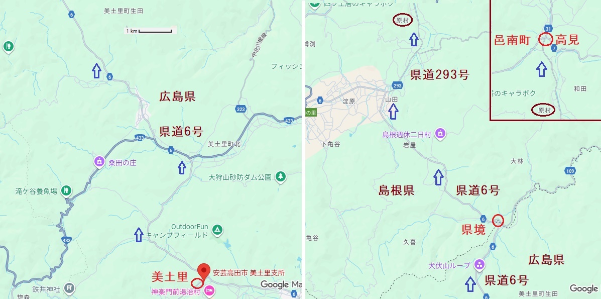 安芸高田市美土里、県道6号で犬伏ループを越えて島根県邑南