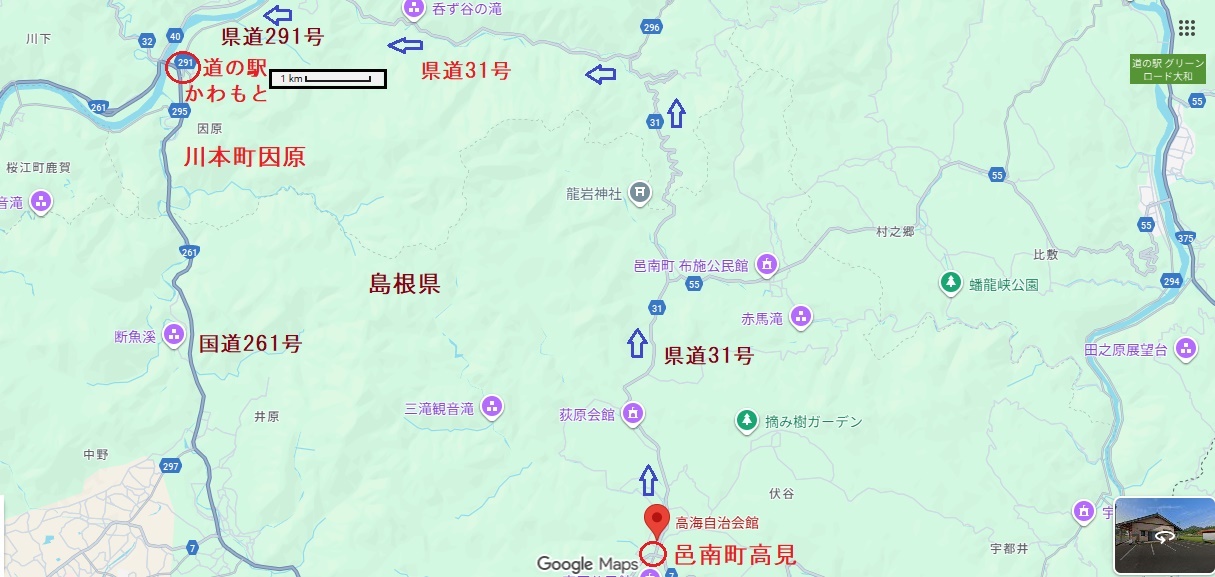 川本市街地を避けるような感じで因原地区に到着。道の駅に寄っ