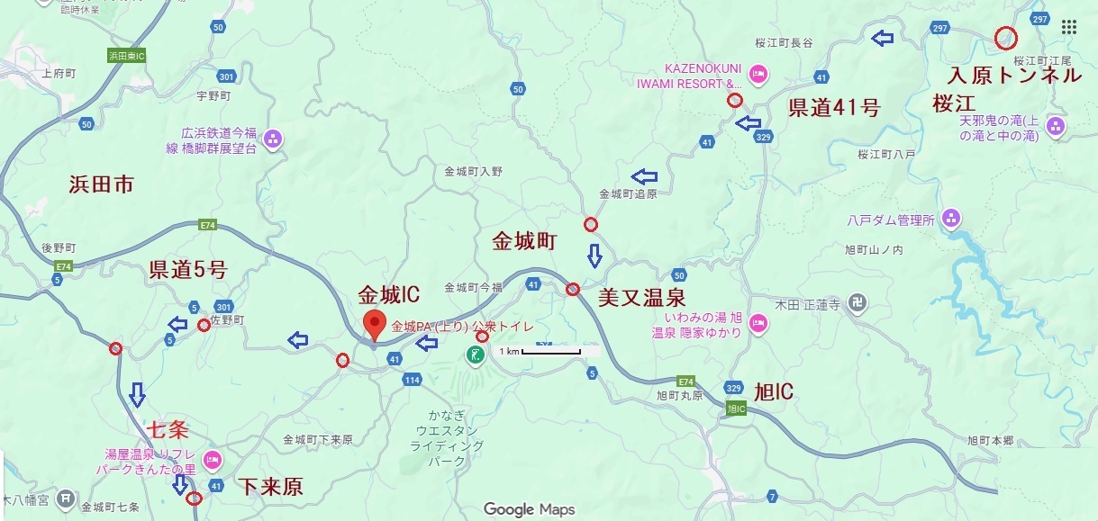 ながらドライブ。前回は瑞穂ICに向かいましたが、今回は大朝