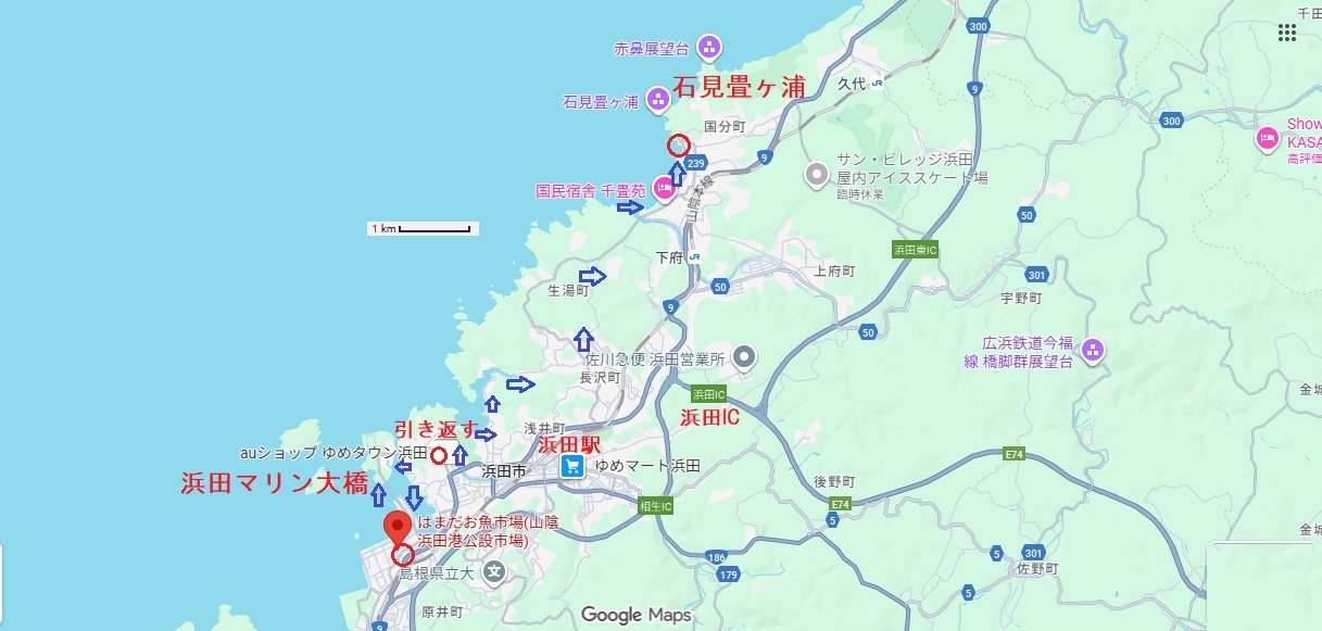 2年前に浜田城に行ったけど、その時の道を通って外の浦に向